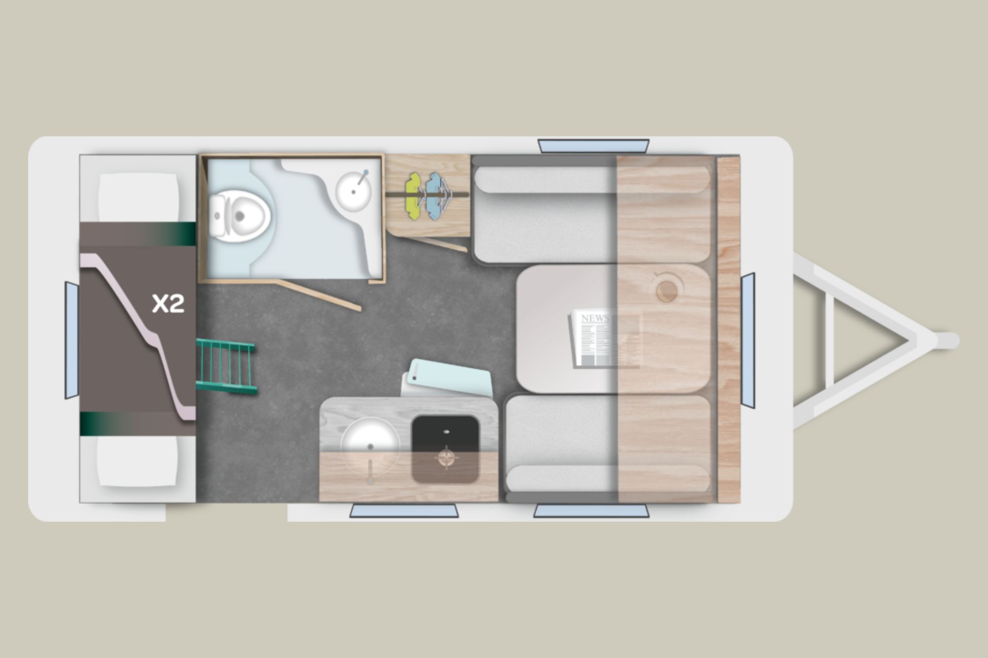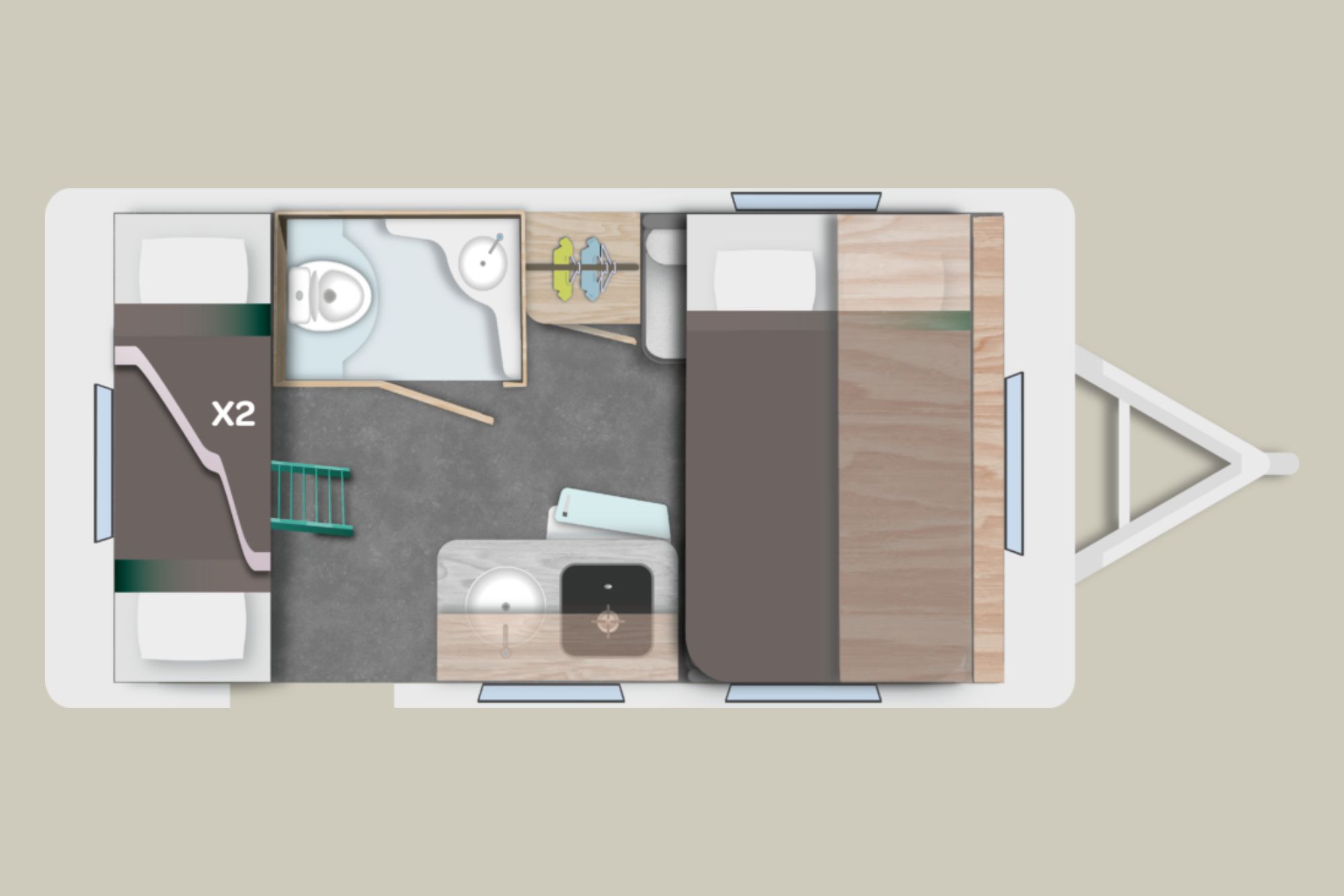 Camas posteriores: 2 x (70 x 192 cm).
