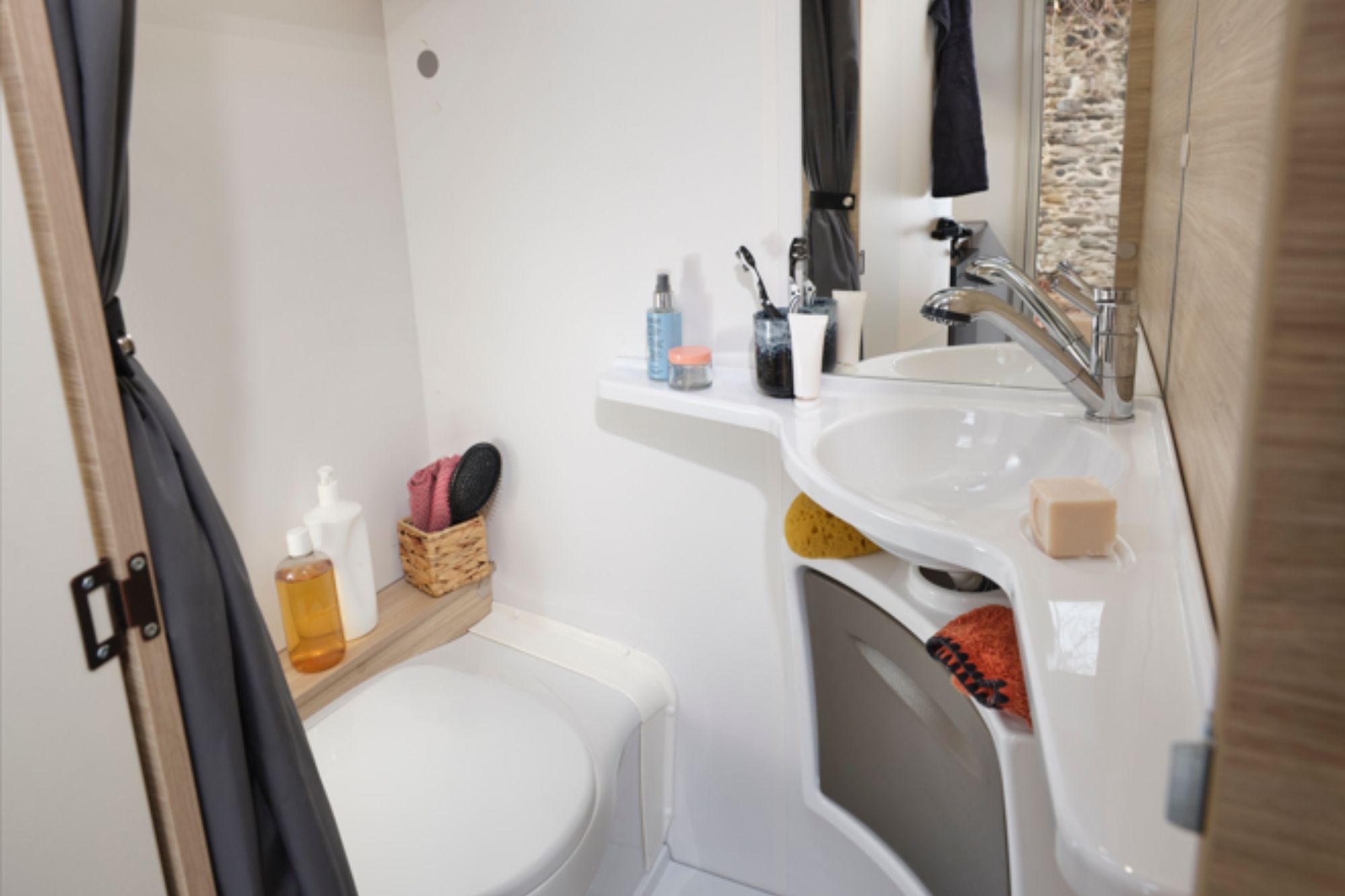 El cuarto de aseo completamente equipado ofrece todo el confort que necesitas en ruta, mientras que el comedor transformable se adapta fácilmente para convertirse en una cama adicional, perfecta para invitados o viajes en familia.