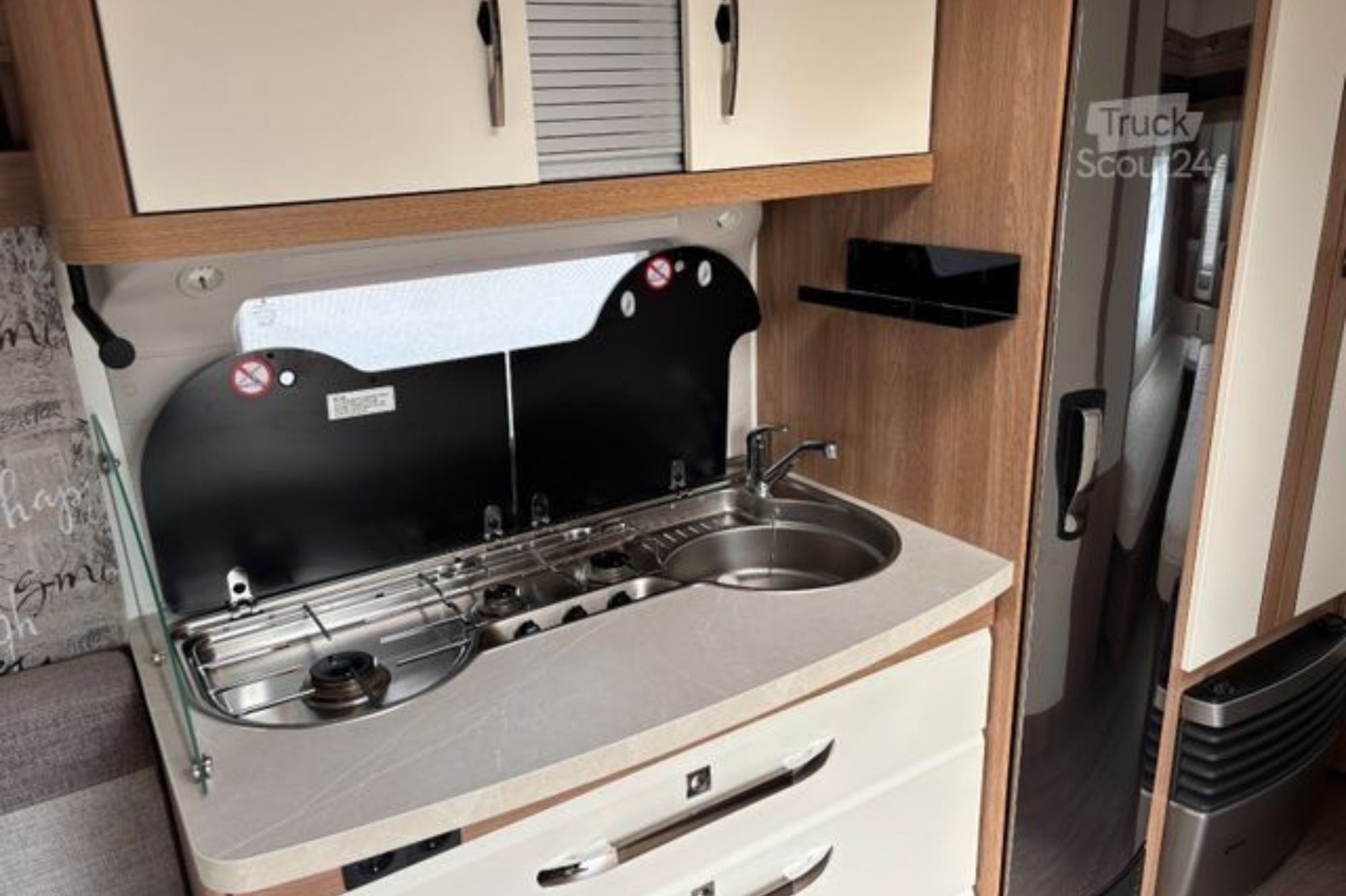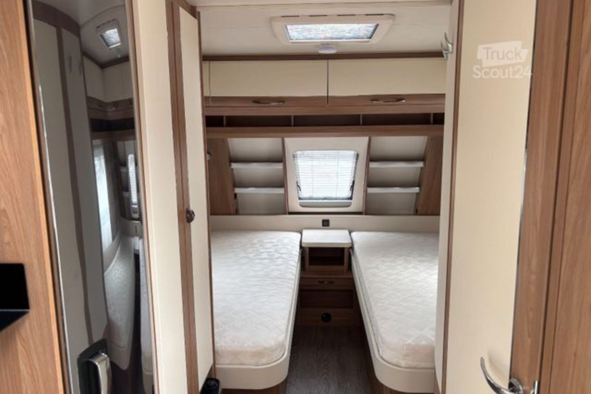Su distribución está pensada para ofrecer el máximo confort, con una cama isla trasera central de 150 × 190 cm, que permite acceder cómodamente desde ambos lados, además de una cama supletoria en el comedor de 135/52 × 200 cm y opción de cama de techo eléctrica de 126/106 × 192 cm, ofreciendo hasta 4 plazas reales para dormir. El salón tipo face to face con asientos enfrentados crea una agradable zona de estar amplia y luminosa. Medidas: Longitud 7,40 m x Anchura 2,32 m x Altura 2,88 m MMA: 3500 kg (carnet B) Plazas: 4