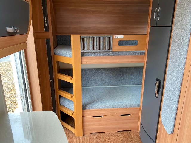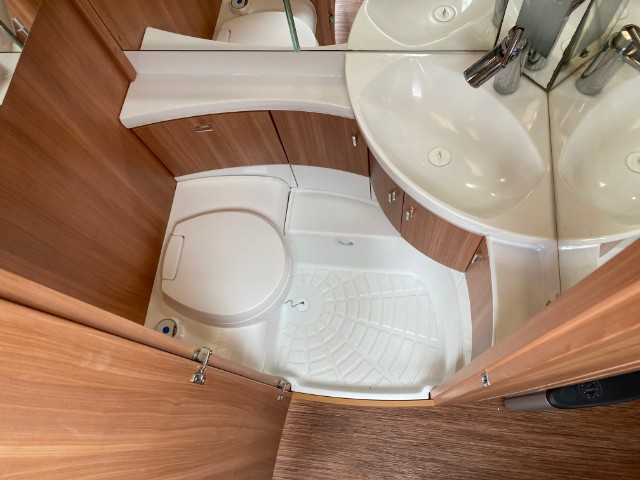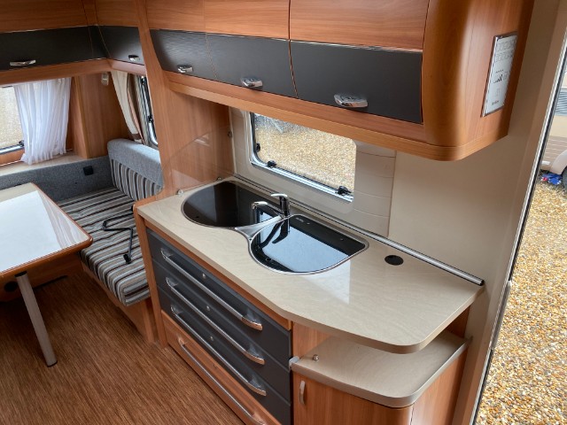 La caravana Hobby De Luxe 420 KB es un modelo compacto con literas, ideal para familias pequeñas, Ofrece 4 plazas, una longitud de aproximadamente 6,20 metros, una altura de 2,59 metros y una Masa Máxima Autorizada (MMA) de unos 1200 kg.  Cocina con fogones y fregadero, nevera de 140L  baño con WC Thetford, sistema de calefacción Truma, y mosquiteras y oscurecedores en ventanas.