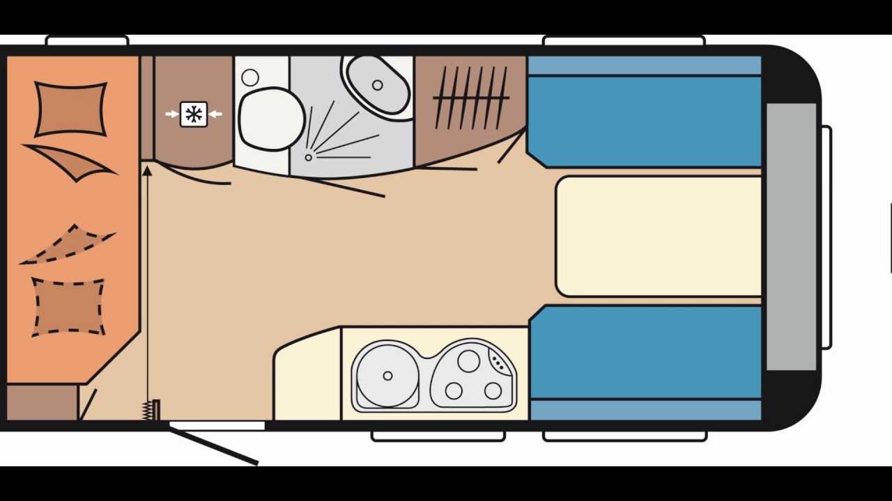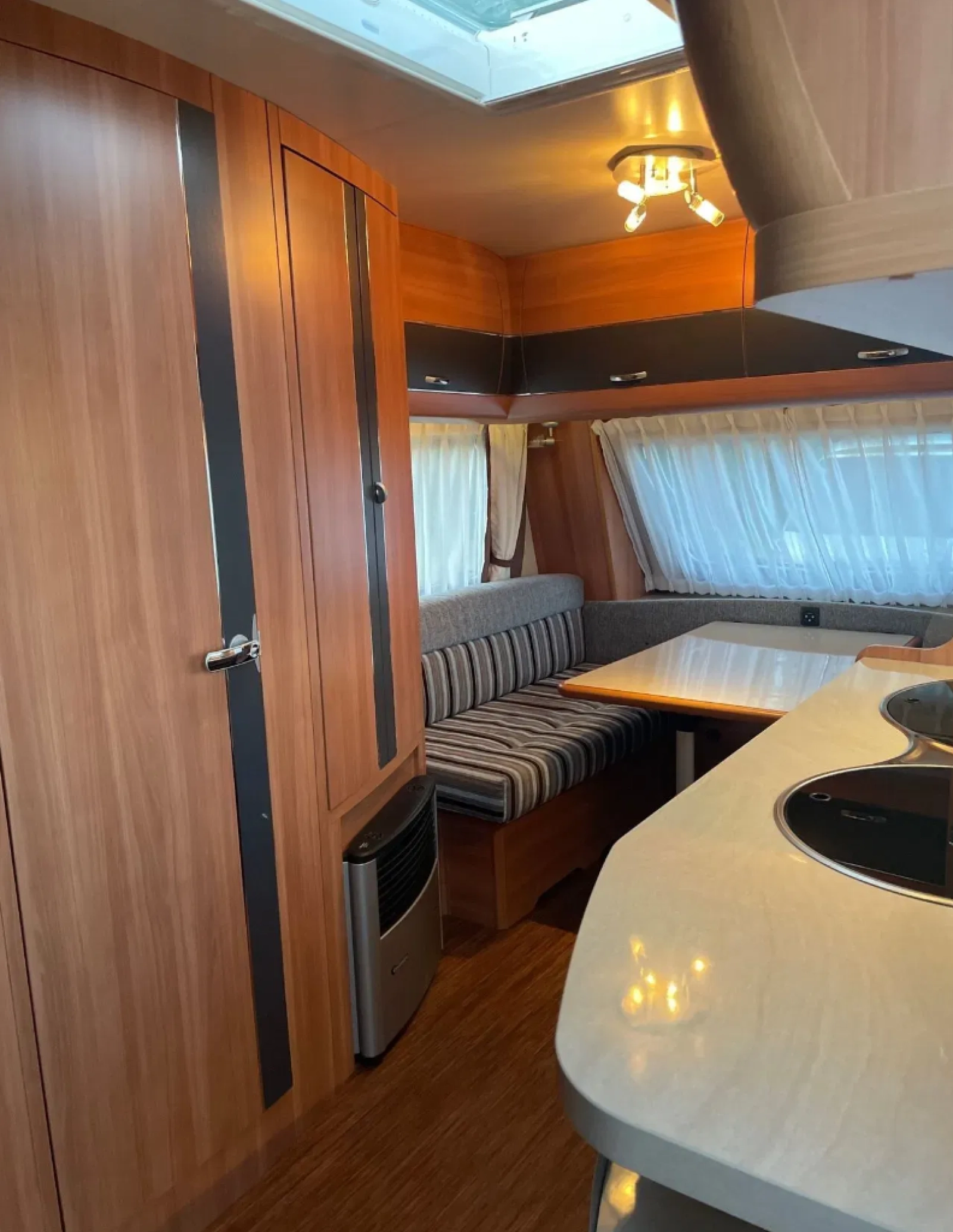 La Hobby De Luxe 420 KB es una caravana compacta popular entre familias de cuatro miembros por su distribución con literas y un salón convertible, con una longitud total de aproximadamente 6,20 metros. Suele estar equipada con cocina, baño, frigorífico y calefacción, lo que la convierte en una opción versátil y de peso moderado (MMA aprox. 1.200 kg) adecuada para viajes sencillos.